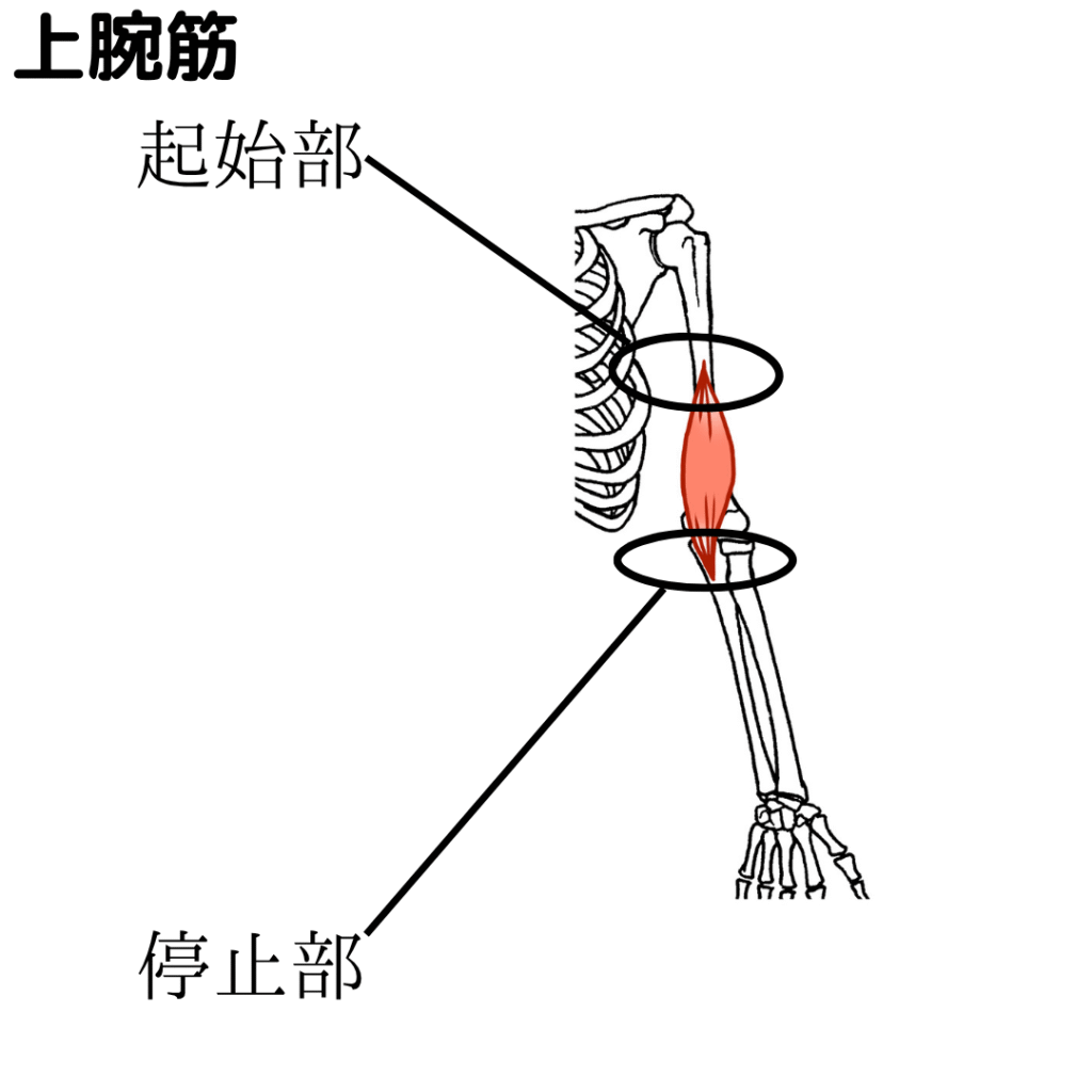 上腕筋は回外(手のひらが上)回内(手のひらが下)の影響を受けずに肘を曲げられるのが特徴です。