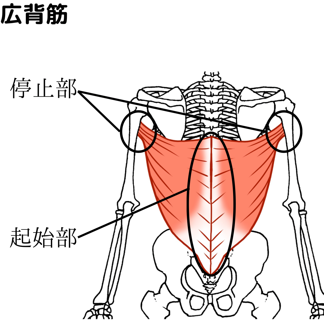 ・起始部:腸骨稜後面、仙骨後面、および第七胸椎から第五胸椎にかけての棘突起と第十・第十一・第十二肋骨